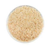 Zdrowe brązowy ryż na białym tle