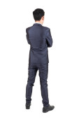Biznesmen w czarnym garniturze stojącego na białym tle