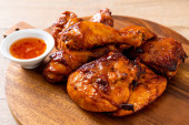 Zdjęcie "grillowany i grilla kurczaka na stole" może być wykorzystywane do celów osobistych i komercyjnych zgodnie z warunkami zakupionej licencji Royalty-free. Obraz jest dostępny do pobrania w jakości wysokiej rozdzielczości do 5760x3840.