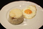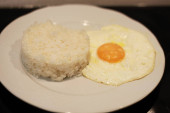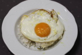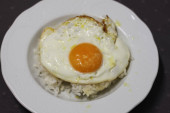 Jedzenie z smażone jajka na danie, ale nie jeść żółtko.