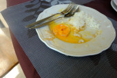 Zdjęcie "Jedzenie z smażone jajka na danie, ale nie jeść żółtko." może być wykorzystywane do celów osobistych i komercyjnych zgodnie z warunkami zakupionej licencji Royalty-free. Obraz jest dostępny do pobrania w jakości wysokiej rozdzielczości do 5760x3840.