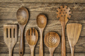 drewniane łyżeczki na drobnoziarnisty podłoże drewniane