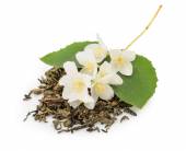 Zielona herbata jaśminowa suche liście z świeżych kwiatów jaśminu.