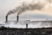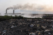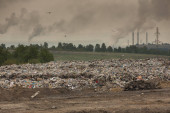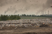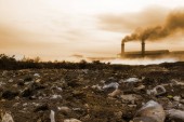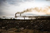 Przemysłowe odpady i zanieczyszczenia powietrza z czarnego dymu z kominów.
