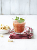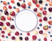 Cherry ice cream scoop w misce, jagody świeże wiśni i kwiaty na ciemnozielonym z miejsca kopii.