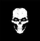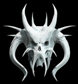 Ilustracja biały uśmiech czaszki z rogami. Na białym tle obraz na czarnym tle. Okładka albumu, książki i strony. Devil's obrazu. Iluzja na plakat. Szkic 2d malarstwo cyfrowe.