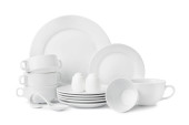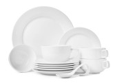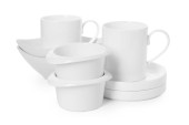 Stosy ceramiczne naczynia na białym tle