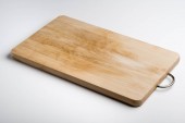 Pusty na białym tle okrągły drewniana deska do krojenia na białym tle