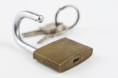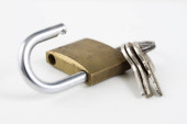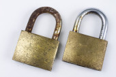 Zdjęcie "Mosiądz kłódką na stół biały. Akcesoria do blokowania i zabezpieczenia przed włamaniem. Białe tło." może być wykorzystywane do celów osobistych i komercyjnych zgodnie z warunkami zakupionej licencji Royalty-free. Obraz jest dostępny do pobrania w jakości wysokiej rozdzielczości do 5760x3840.