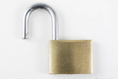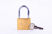 Zdjęcie "Mosiądz kłódką na stół biały. Akcesoria do blokowania i zabezpieczenia przed włamaniem. Białe tło." może być wykorzystywane do celów osobistych i komercyjnych zgodnie z warunkami zakupionej licencji Royalty-free. Obraz jest dostępny do pobrania w jakości wysokiej rozdzielczości do 5760x3840.