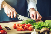 Zdjęcie "Człowiek, przygotowanie kuchni świeże detox zdrową sałatkę na stole. Cięcia papryka żółta. Zbliżenie" może być wykorzystywane do celów osobistych i komercyjnych zgodnie z warunkami zakupionej licencji Royalty-free. Obraz jest dostępny do pobrania w jakości wysokiej rozdzielczości do 5760x3840.