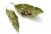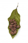 Ziarna kawy z kawy liści na białym tle, Zdjęcie koncepcji graficznych jesień