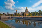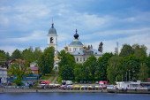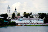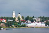 Mieście Myshkin, nad brzegiem rzeki Volga w letni wieczór.