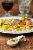 Zdjęcie "Omówienie Sałatka cesar na talerzu" może być wykorzystywane do celów osobistych i komercyjnych zgodnie z warunkami zakupionej licencji Royalty-free. Obraz jest dostępny do pobrania w jakości wysokiej rozdzielczości do 5760x3840.
