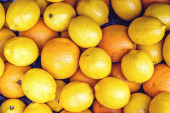 Świeży pęczek cytryny i limonki. Zbliżenie z góry. Chisinau, Mołdawia