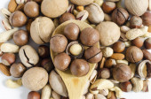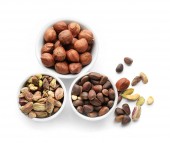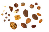 różne orzechy na białym tle
