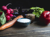 Zdjęcie "napowietrznych ziół, warzyw, sól i kukurydzy kopiować miejsca na powierzchni drewnianych" może być wykorzystywane do celów osobistych i komercyjnych zgodnie z warunkami zakupionej licencji Royalty-free. Obraz jest dostępny do pobrania w jakości wysokiej rozdzielczości do 5760x3840.