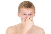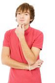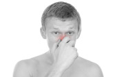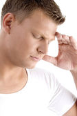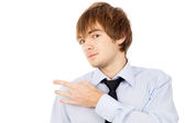 przystojny facet, usuwa łupież, ubrany w koszulę i krawat