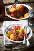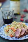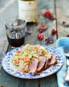 Pierś z kaczki z wiśniowym sosem i polenta.style focus rustic.selective
