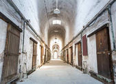Narkotyków nałogowiec pokój, stary fotel i materac na podłodze w opuszczonym domu, nikt. Miejsce junkie, den ćpuna, druggy zapas