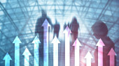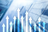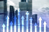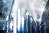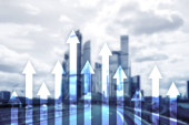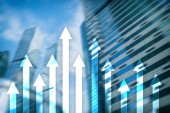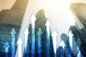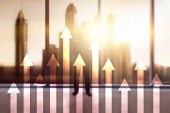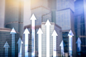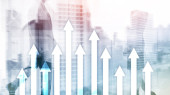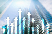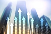 Zdjęcie "W górę wykres strzałek na tle drapacza chmur. Koncepcja inwestycji i wzrostu finansowego." może być wykorzystywane do celów osobistych i komercyjnych zgodnie z warunkami zakupionej licencji Royalty-free. Obraz jest dostępny do pobrania w jakości wysokiej rozdzielczości do 5760x3840.