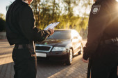 Zdjęcie "Mężczyzna policjant w mundurze pisze grzywny na drodze. Ochrony prawa, inspektor ruchu samochodu, zadanie kontroli bezpieczeństwa" może być wykorzystywane do celów osobistych i komercyjnych zgodnie z warunkami zakupionej licencji Royalty-free. Obraz jest dostępny do pobrania w jakości wysokiej rozdzielczości do 5760x3840.