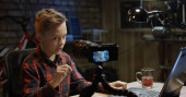 Teen chłopiec Dokonywanie transmisja na żywo w domu