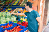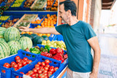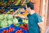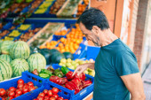 Zdjęcie "Średnim wieku człowiek jedzenie zdrowe Czerwone jabłko z gniewną twarz, minus Wyświetlono nie lubić z kciuk w dół, odrzucenie koncepcji" może być wykorzystywane do celów osobistych i komercyjnych zgodnie z warunkami zakupionej licencji Royalty-free. Obraz jest dostępny do pobrania w jakości wysokiej rozdzielczości do 5760x3840.