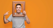 Zdjęcie "Przystojny młody mężczyzna patrząc przez vintage sztuka ramki poważny wyraz twarzy myślenia o pytanie, bardzo mylić pojęcia" może być wykorzystywane do celów osobistych i komercyjnych zgodnie z warunkami zakupionej licencji Royalty-free. Obraz jest dostępny do pobrania w jakości wysokiej rozdzielczości do 5760x3840.
