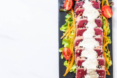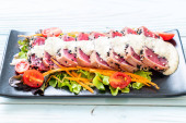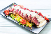 świeżego tuńczyka surowego z sałatką warzywną i sosem - zdrowa żywność