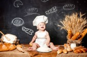Urocza dziewczynka w kapelusz kucharz ciasta