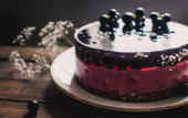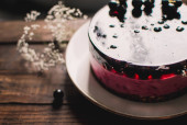 zbliżenie blackberry pyszne ciasto na drewnianą deską do krojenia i czarny z tortu