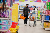 Zdjęcie "Zakupy, Kobieta, patrząc na półkach w supermarkecie. Portret młodej dziewczyny w sklepie rynku." może być wykorzystywane do celów osobistych i komercyjnych zgodnie z warunkami zakupionej licencji Royalty-free. Obraz jest dostępny do pobrania w jakości wysokiej rozdzielczości do 5760x3840.