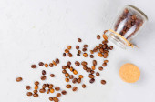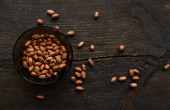 Surowe obrane orzeszki ziemne w misce brązowy ceramicznych na stary ciemne drewniane tła, Selektywny fokus