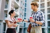 Szczęśliwy pozytywny człowiek ogląda jego dziewczyna