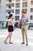Zdjęcie "Szczęśliwy pozytywny człowiek ogląda jego dziewczyna" może być wykorzystywane do celów osobistych i komercyjnych zgodnie z warunkami zakupionej licencji Royalty-free. Obraz jest dostępny do pobrania w jakości wysokiej rozdzielczości do 5760x3840.
