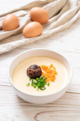 w domu jajko gotowane na parze z wieprzowe mielone mięso i warzywa