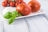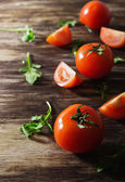 Różnych pomidory na podłoże drewniane