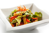 Zdjęcie "Ciepły, słodki Sałatka z plastry pieczonego kurczaka, warzywa i ananasa na białym tle. Danie główne Salat z smażony filet z indyka, pomidory, ogórki, awokado w eleganckiej restauracji płyta" może być wykorzystywane do celów osobistych i komercyjnych zgodnie z warunkami zakupionej licencji Royalty-free. Obraz jest dostępny do pobrania w jakości wysokiej rozdzielczości do 5760x3840.