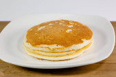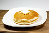 Zdjęcie "Stos złotych naleśniki na talerzu biały siedzi na stole w kuchni czeka do spożycia" może być wykorzystywane do celów osobistych i komercyjnych zgodnie z warunkami zakupionej licencji Royalty-free. Obraz jest dostępny do pobrania w jakości wysokiej rozdzielczości do 5760x3840.