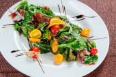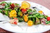 Świeża sałatka zielona ze szpinakiem, rukolą, romańską i sałatą.