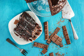 domowe czekoladowe ciasteczka na białym tle drewnianych, widok z góry