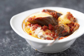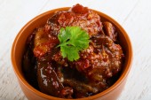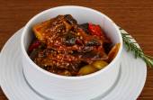 zbliżenie na misce z Bliskiego Wschodu duszony bakłażan