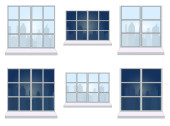 Zbiór różnych oknach, element architektury, wektor, ilustracja,