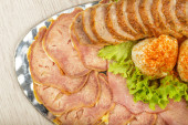 Mięso pokrojone na danie lustro, ozdobione werdiurę.