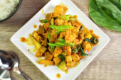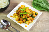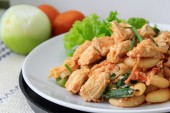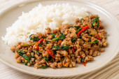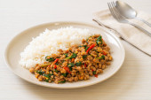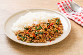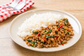 Tajskie jedzenie pikantne, smażone wieprzowina z bazylią
