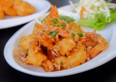 Zupa Tom Yum owoce lub pikantne omijajcie z owoców morza, tajskie jedzenie