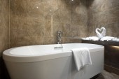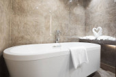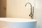 Zdjęcie "Wnętrze pusty łazienka z wanną" może być wykorzystywane do celów osobistych i komercyjnych zgodnie z warunkami zakupionej licencji Royalty-free. Obraz jest dostępny do pobrania w jakości wysokiej rozdzielczości do 5760x3840.