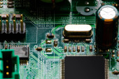 Zdjęcie "Makro ujęcie układu scalonego z rezystorami mikroczipami i komponentami elektronicznymi. Technologia sprzętu komputerowego. Zintegrowany procesor komunikacyjny. Inżynieria informacji. Półprzewodnik. Płytka drukowana. Zbliżenie" może być wykorzystywane do celów osobistych i komercyjnych zgodnie z warunkami zakupionej licencji Royalty-free. Obraz jest dostępny do pobrania w jakości wysokiej rozdzielczości do 5760x3840.