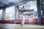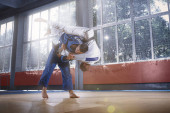 Zdjęcie "Dwóch zawodników judo Wyświetlono umiejętności techniczne podczas uprawiania sztuk walki w klubie walki" może być wykorzystywane do celów osobistych i komercyjnych zgodnie z warunkami zakupionej licencji Royalty-free. Obraz jest dostępny do pobrania w jakości wysokiej rozdzielczości do 5760x3840.